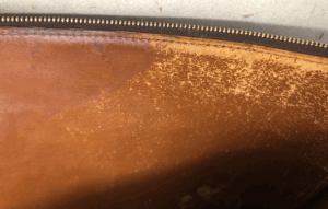 Die Lederkanten geklebt/geschliffen und gefärbt in schwarz, braun oder rot? Die Lederteile mit Lederpflege einlassen oder die Messingteile aufpolieren und das natürlich alles unmerklich.